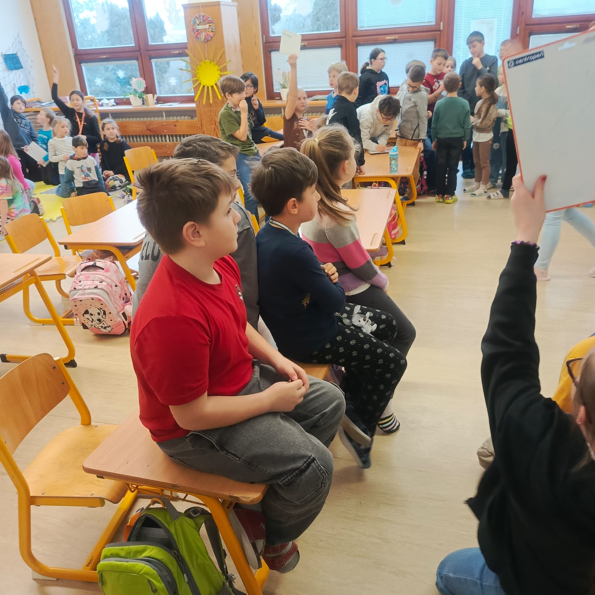 Tento pátek u nás ve škole proběhla společná akce na téma Večerníčky – a protože se tomuto tématu věnujeme po celý školní rok, čekala děti tentokrát zábavná výzva: poznat večerníčkové znělky. 🎶✨