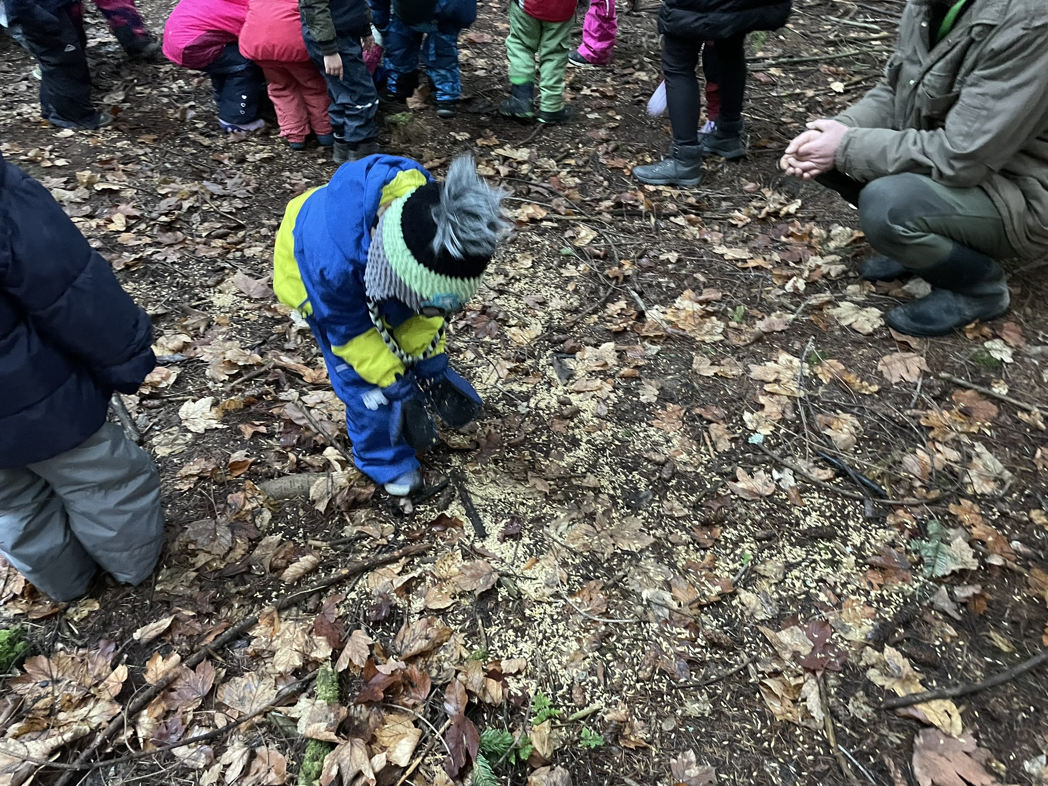 Na závěr nás čekalo ještě hledání pokladu – každý si v lese našel schované lízátko, takže radost byla veliká. Pak už jsme se rozloučili, poděkovali a od pánů myslivců si odvezli i malé mlsání do školky.