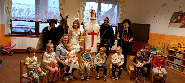 Nejprve navštívili ve školce ty nejmenší kamarády. Mikuláš měl s sebou knihu s hříchy, takže řekl dětem, v čem se mají zlepšit, poté jim ,,čertovská parta´´ rozdala připravené balíčky.